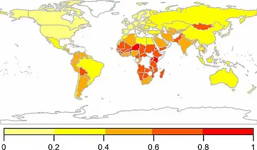 Although livestock production serves as a source of income, it can provide additional economic values for rural families, often serving as a major contributor to food security and economic security. Livestock can serve as insurance against risk[46] and is an economic buffer (of income and food supply) in some regions and some economies (e.g., during some African droughts). However, its use as a buffer may sometimes be limited where alternatives are present,[47] which may reflect strategic maintenance of insurance in addition to a desire to retain productive assets. Even for some farmers in Western nations, livestock can serve as a kind of insurance.[48] Some crop growers may produce livestock as a strategy for diversification of their income sources, to reduce risks related to weather, markets and other factors.[49][50]