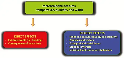 According to the Special Report on Climate Change and Land, livestock diseases are expected to get worse as climate change increases temperature and precipitation variability.[34]