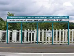 Llanfairpwllgwyngyllgogerychwyrndrobwllllantysiliogogogoch ([ˌɬan.vair.pʊɬ.ˌɡwɨ̞ŋ.ɡɨ̞ɬ.ɡɔ.ˌɡɛ.rə.ˌχwərn.ˌdrɔ.bʊɬ.ˌɬan.tə.ˌsɪl.jɔˌɡɔ.ɡɔ.ˈɡoːχ] ⓘ) is a lengthened form of the name, used in some contexts. With 58 characters split into 18 syllables, it is purported to have the longest name in Europe and the second longest one-word place name in the world.[6][7]