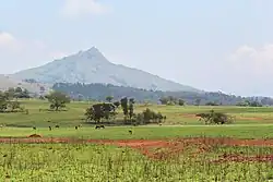 Lobamba is located in the western part of the country[8] in the woodland "Valley of Heaven", or Ezulwini Valley.[9] It is 16 kilometres (10 mi) from Mbabane, in the district of Hhohho[6] and has a subtropical climate with wet summers and dry winters.[8]