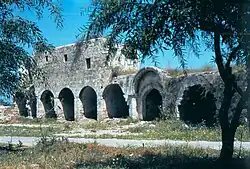 Sultan Baybars brought Lydda again under Muslim control by 1267–8.[55] According to Qalqashandi, Lydda was an administrative centre of a wilaya during the fourteenth and fifteenth century in the Mamluk empire.[55] Mujir al-Din described it as a pleasant village with an active Friday mosque.[55][56] During this time, Lydda was a station on the postal route between Cairo and Damascus.[55][57]