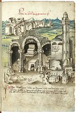 The city was visited by the local Arab geographer al-Muqaddasi in 985, when it was under the Fatimid Caliphate, and was noted for its Great Mosque which served the residents of al-Ludd, Ramla, and the nearby villages. He also wrote of the city's "wonderful church (of St. George) at the gate of which Christ will slay the Antichrist."[51]