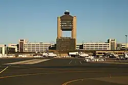 Logan Airport opened on September 8, 1923, and at that time it was mainly used by the Massachusetts Air National Guard and the United States Army Air Corps. At the time, it was referred to as "Boston Air Port" at Jeffries Point.[10] The first scheduled commercial passenger flights to start at the new airfield were on Colonial Air Transport between Boston and New York City, starting in 1927.[11] On January 1, 1936, the airport's weather station became the official point for Boston's weather observations and records by the National Weather Service.[12]