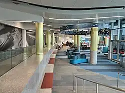 Pier B was completed for US Airways in 1974 and Pier A for American in 1975.[54] The terminal remained largely unchanged until US Airways expanded its operations at Logan in 1979, and improvements designed by HNTB were constructed in 1980.[54] From 1980 until 2000, numerous small projects including passenger seating area improvements, concessions expansions and passenger lounges were completed at both piers.[54][57] American's facilities were renovated in 1995 and redesigned by Gresham, Smith & Partners,[57][58] and US Airways' facilities were renovated in 1998 and 2000, and redesigned by URS Corporation in collaboration with James F. Young, with Turner Construction serving as the construction manager.[57][59]