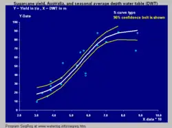 The logistic S-curve can be used for modeling the crop response to changes in growth factors. There are two types of response functions: positive and negative growth curves. For example, the crop yield may increase with increasing value of the growth factor up to a certain level (positive function), or it may decrease with increasing growth factor values (negative function owing to a negative growth factor), which situation requires an inverted S-curve.