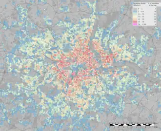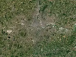 London's diverse cultures encompass over 300 languages.[25] The 2025 population of Greater London of just over 9.8 million made it Europe's third-most populous city, accounting for 13.1 per cent of the United Kingdom's population and 15.5 per cent of England's population.[26] The Greater London Built-up Area is the fourth-most populous in Europe, with about 9.8 million inhabitants as of 2011.[3][27] The London metropolitan area is the third-most-populous in Europe, with about 15 million inhabitants as of 2025, making London a megacity.[g][28][29]