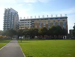 The interwar era saw the building of social housing by the LCC and the borough council in the area including the Kingsmead Estate, Morningside Estate, Banister House and Nisbet House.[11][12][13] The borough also includes housing projects developed by high-profile postwar architects including The Beckers (1958) by Sir Frederick Gibberd, Granard House (1959) by Colin St John Wilson and Pitcairn House (1962) by Eric Lyons.[14][15][16] Following extensive post-war development and immigration since the late 20th century, population pressure has increased and the area's many Georgian and Victorian terraces are being gentrified, warehouses are being converted to housing, and new flats are being built.[17]