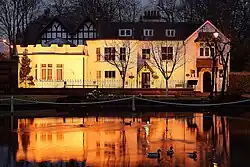 The Charles Cryer Studio Theatre is situated on the High Street (number 39) in Carshalton Village. [24] It was opened by Prince Edward in 1991. [25] As well as drama and musicals, productions included comedy and dance. With material ranging from Shakespeare to Chekov to panto and children's favourites, the theatre's aim was to balance popularity with quality. The theatre also served as a concert venue for local bands and played host to the popular local Rockshot festival. The theatre is named after the man who led the campaign to open the Secombe Theatre, Sutton, listed below.[26] In August 2016 Sutton Theatres Trust, which owned the theatre, went into administration and it closed.[27] However, at a meeting in October 2018, the local council confirmed that the theatre would be brought back into use, following a successful bid to run the venue (on a 25-year lease) by Cryer Arts Ltd. The company plans a range of events, including music, film and theatre.[28][29]