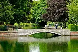 Beddington Park is the location of Carew Manor which was the home of the Beddington branch of the Carew family. The Grade I listed great hall,[38] with its hammerbeam roof, survives from the Tudor house along with part of the early 18th-century orangery built around the orange trees planted by Sir Francis Carew in the 16th century and claimed to be the first in England. In the grounds is an early 18th-century Grade II* listed dovecote.[39] Archaeologists discovered a Tudor garden including a grotto at Carew Manor, believed to have been created by Sir Francis Carew in the 16th century. There are tours of the great hall organised by the London Borough of Sutton Museum & Heritage Service.