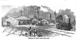 The two stations, as seen from the line c. 1853
