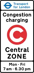 The London congestion charge is a fee charged on most cars and motor vehicles being driven within the Congestion Charge Zone (CCZ)[2] in Central London between 7:00 am and 6:00 pm Monday to Friday, and between 12:00 noon and 6:00 pm Saturday and Sunday.[3][4] Enforcement is primarily based on automatic number-plate recognition (ANPR).
