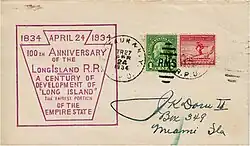 LIRR (Montauk & NY) RPO cover (TR27) for the railroad's 100th anniversary in April 1934