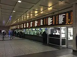 The former LIRR ticket counter at Penn Station, which displayed all locations accessible therefrom