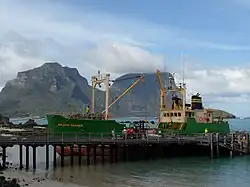 Island Trader, a fortnightly feature to the island, with the mountains in the background.