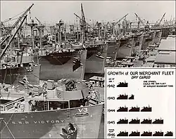 During World War II, Los Angeles was a major center of wartime manufacturing, such as shipbuilding and aircraft. Calship built hundreds of Liberty Ships and Victory Ships on Terminal Island, and the Los Angeles area was the headquarters of six of the country's major aircraft manufacturers (Douglas Aircraft Company, Hughes Aircraft, Lockheed, North American Aviation, Northrop Corporation, and Vultee). During the war, more aircraft were produced in one year than in all the pre-war years since the Wright brothers flew the first airplane in 1903, combined. Manufacturing in Los Angeles skyrocketed, and as William S. Knudsen, of the National Defense Advisory Commission, put it, "We won because we smothered the enemy in an avalanche of production, the like of which he had never seen, nor dreamed possible."[68]