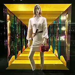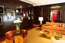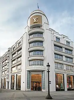 Louis Vuitton Malletier SAS[a] is a French luxury fashion house and company founded in 1854 by Louis Vuitton.[1] The label's LV monogram appears on most of its products, ranging from luxury bags and leather goods to ready-to-wear, shoes, perfumes, watches, jewellery, accessories, sunglasses and books. Louis Vuitton is one of the world's leading international fashion houses. It sells its products through standalone boutiques, lease departments in high-end department stores, and through the e-commerce section of its website.[4][5] Louis Vuitton merged with Moët Hennessy in 1987 to create LVMH, of which it is a subsidiary.