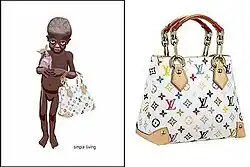 On 13 February 2007, Louis Vuitton sent a cease-and-desist order to Danish art student Nadia Plesner for using an image of a bag that allegedly infringed Louis Vuitton's intellectual property rights. Plesner had created a satirical illustration, "Simple Living", depicting a malnourished child holding a designer dog and a designer bag, and used it on T-shirts and posters to raise funds for the charity "Divest for Darfur".[70] On 25 March, the court ruled in favour of LV that the image was a clear infringement of copyright.[71] Despite the ruling, Plesner continued to use the image, arguing artistic freedom, and posted copies of the cease-and-desist order on her website. On 15 April 2008, Louis Vuitton notified Plesner of the lawsuit being brought against her. Louis Vuitton demanded $7,500 (€5,000) for each day Plesner continues to sell the "Simple Living" products, $7,500 for each day the original cease-and-desist letter is published on her website and $7,500 a day for using the name "Louis Vuitton" on her website, plus legal and enforcement costs.[72]