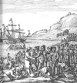 In 1630, Razilly was able to negotiate the purchase of French slaves from the Moroccans. He visited Morocco again in 1631, and helped negotiate the Franco-Moroccan Treaty (1631).[17] The treaty gave France preferential treatment, known as capitulations: preferential tariffs, the establishment of a consulate, and freedom of religion for French subjects.[18]