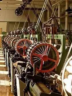 By the 1850s, Lowell had the largest industrial complex in the United States. The textile industry wove cotton produced in the Southern United States. In 1860, there were more cotton spindles in Lowell than in all eleven states combined that would form the Confederate States of America.[10] Many of the coarse cottons produced in Lowell eventually returned to the South to clothe enslaved people, and, according to historian Sven Beckert, "'Lowell' became the generic term slaves used to describe coarse cottons."[11] The city continued to thrive as a major industrial center during the 19th century, attracting more migrant workers and immigrants to its mills. Next were the Catholic Germans, followed by a large influx of French Canadians during the 1870s and 1880s. Later waves of immigrants came to work in Lowell and settled in ethnic neighborhoods, with the city's population reaching almost 50% foreign-born by 1900.[12] By the time World War I broke out in Europe, the city had reached its economic peak.