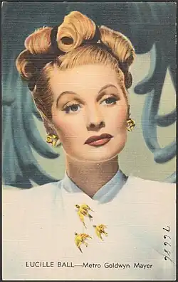 In 1942, Ball starred opposite Henry Fonda in The Big Street.[47] MGM producer Arthur Freed purchased the Broadway hit musical play Du Barry Was a Lady (1943) especially for Ann Sothern, but when she turned down the part, that role went to Ball, Sothern's real-life best friend. In 1943, Ball portrayed herself in Best Foot Forward. In 1945, she appeared in a brief but prominent role in a dance sequence in Ziegfeld Follies. In 1946, Ball starred in Lover Come Back and the film noir The Dark Corner. In 1947, she appeared in the murder mystery Lured as Sandra Carpenter, a taxi dancer in London.[39] In 1948, Ball was cast as Liz Cooper, a wacky wife in My Favorite Husband, a radio comedy for CBS Radio.[39] (At first, the character's name was Liz Cugat; this was changed because of confusion with real-life bandleader Xavier Cugat, who sued.[48])