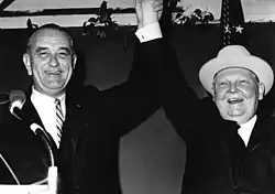 Erhard considered using money to bring about the reunification of Germany, which would have broken a diplomatic stalemate that had existed since the end of the Second World War regarding the status of West and East Germany. Despite Washington's reluctance, Erhard envisaged offering Nikita Khrushchev, the leader in Moscow, massive economic aid in exchange for more political liberty in East Germany and eventually for reunification. Erhard believed that if West Germany were to offer a "loan" worth $25 billion US to the Soviet Union (which Erhard did not expect to be repaid), then the Soviet Union would permit German reunification.[19] Erhard did not have a specific, concrete plan in mind, however, believing that reality, and especially negotiations over such a major proposition, were too complex to be forecasted in advance with any accuracy, and as a result, he prepared to negotiate without any predetermined agenda.[20] The acting American Secretary of State George Wildman Ball described Erhard's plan to essentially buy East Germany from the Soviet Union as "half-baked and unrealistic."[19] Erhard's objective coincided with Khrushchev rethinking his relations with West Germany. The Soviet leader secretly encouraged Erhard to present a realistic proposal for a modus vivendi and officially accepted the Chancellor's invitation to visit Bonn. However, Khrushchev fell from power in October 1964, and nothing developed out of Erhard's envisioned idea for the reunification of Germany.[20] Perhaps more importantly, the Soviet Union had received a vast series of loans from the international money markets by late 1964, and no longer felt the need for Erhard's money.[19]