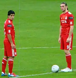 On 31 January 2011, Suárez signed a five-and-a-half-year deal with Liverpool until 2016,[60][67] and was the club's most expensive signing (£22.8 million) until the arrival of Andy Carroll (£35 million) a few hours later.[68] Suárez requested the number seven shirt, which had been worn by Liverpool legends Kenny Dalglish, his new manager, Kevin Keegan, and Peter Beardsley[69]