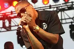 He began rapping his poems in the eighth grade, and upon hearing Nas' 1996 album, It Was Written, he began to pursue hip hop.[8] While attending Thornton Township High School, Fiasco met gang member Bishop G. The two became friends due to their shared interest in music.[5] Fiasco's father allowed him and Bishop to make mixtapes in his basement, and the two gained notoriety at the school for their music. However, they were kicked off stage during their first performance because their eclectic musical style was not embraced by the hip hop community.[5] Early in his career, he went by stage names Little Lu and Lu tha Underdog.[13] Growing up, Fiasco was given the nickname "Lu", the last part of his first name, by his mother. "Lupe" is an extension of this nickname, which he borrowed from a friend from high school. "Fiasco" is a reference to The Firm song "Firm Fiasco"; the rapper "liked the way it looked on paper."[14] He also said of his name, "You know how rappers always have names like MC Terrorist—like they're 'terrorizing' other rappers? I knew fiasco meant a great disaster or something like that, but I didn't realize that the person named Fiasco would be the disaster, and that you should be calling other MCs fiascos—not yourself...it kind of humbled me in a sense. It taught me like, 'Yo, stop rushing, or you're going to have some fiascos.'"[13]