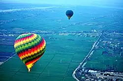 Luxor has frequently been characterized as the ''world's greatest open-air museum'', as the ruins of the Egyptian temple complexes at Karnak and Luxor stand within the modern city. Immediately opposite, across the River Nile, lie the monuments, temples, and tombs of the West Bank Theban Necropolis, which includes the Valley of the Kings and the Valley of the Queens. Luxor is a major destination for tourism, with its large hotels and resorts, known also for its famous hot air balloons.[4][5][6] The city also contains diversified cultural heritage such as temples, churches, and mosques, co-existing side by side. Around 5 million tourists from around the world arrive annually to visit Luxor's attractions, making a significant contribution to the modern city's economy.[7]