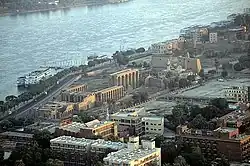 The name Luxor[b] derives from the Arabic قصر qaṣr, meaning "castle" or "palace", in the plural form al-quṣūr (“the palaces").[13][14][c] It may be equivalent to the Greek and Coptic toponym τὰ Τρία Κάστρα ta tria kastra and ⲡϣⲟⲙⲧ ⲛ̀ⲕⲁⲥⲧⲣⲟⲛ pshomt enkastron respectively, which both mean "three castles".[16]