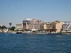 In modern times, the city of Luxor is central to economic, and cultural life in Egypt. The heritage of the Classical Era is still evident in the city, represented by ancient monuments, and works of art. Luxor has been named as the "First World Capital of Culture, History and Heritage".[8][9] The city is located between latitudes 25-26 North and 32-33 East. It is about 670 km from the Egyptian capital, Cairo, about 220 km north of Aswan. Luxor covers an area of approximately 416 km², with a populated area of 208 km², and its population is estimated at approximately 284,952 in 2023.[10] The nearest seaport to the city is Safaga Port, and the nearest airport is the city's Luxor International Airport.[11]
