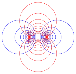 Two points z1 and z2 are conjugate with respect to a generalized circle C, if, given a generalized circle D passing through z1 and z2 and cutting C in two points a and b, (z1, z2; a, b) are in harmonic cross-ratio (i.e. their cross ratio is −1). This property does not depend on the choice of the circle D. This property is also sometimes referred to as being symmetric with respect to a line or circle.[3][4]