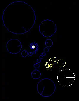 These images show three points (red, blue and black) continuously iterated under transformations with various characteristic constants.