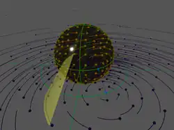An isomorphism of the Möbius group with the Lorentz group was noted by several authors: Based on previous work of Felix Klein (1893, 1897)[11] on automorphic functions related to hyperbolic geometry and Möbius geometry, Gustav Herglotz (1909)[12] showed that hyperbolic motions (i.e. isometric automorphisms of a hyperbolic space) transforming the unit sphere into itself correspond to Lorentz transformations, by which Herglotz was able to classify the one-parameter Lorentz transformations into loxodromic, elliptic, hyperbolic, and parabolic groups. Other authors include Emil Artin (1957),[13] H. S. M. Coxeter (1965),[14] and Roger Penrose, Wolfgang Rindler (1984),[15] Tristan Needham (1997)[16] and W. M. Olivia (2002).[17]