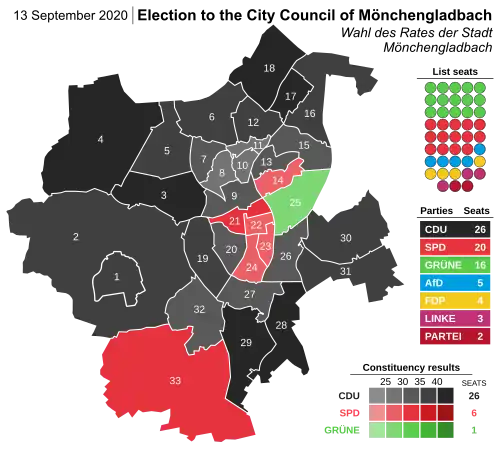 - ^ Wahlergebnisse in NRW Kommunalwahlen 2020, Land Nordrhein-Westfalen, accessed 19 June 2021.