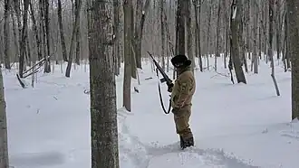 The T44 was tested in a competitive service rifle competition conducted by the Infantry Board at Fort Benning, Georgia against the Springfield T47 (a modified T25) and the T48, a variant of Fabrique Nationale's FN FAL (from Fusil Automatique Leger, French for "light automatic rifle").[15] The T47 did not have a bolt roller and performed worse than both the T44 and the T48 in dust and cold-weather tests. Thus, it was dropped from consideration in 1953.[13] During 1952–53, testing proved the T48 and the T44 to be roughly comparable in performance, with the T48 holding an advantage in ease of field stripping and dust resistance, and a longer product development lead time.[13][15] A Newsweek article in July 1953 speculated that the T48/FAL could have been selected over the T44.[13][16] During the winter of 1953–54, both rifles competed in the winter rifle trials at U.S. Army facilities in the Arctic.[15][17] Springfield Armory engineers, anxious to ensure the selection of the T44, had been specially preparing and modifying the test T44 rifles for weeks with the aid of the armory's cold chamber, including a redesign of the T44 gas regulator and custom modifications to magazines and other parts to reduce friction and seizing in extreme cold.[15][17] The T48 rifles received no such special preparation and in the continued cold-weather testing began to experience sluggish gas system functioning, aggravated by the T48's close-fitting surfaces between bolt and carrier, and carrier and receiver.[13][15][17] FN engineers opened the gas ports in an attempt to improve functioning, but this caused early/violent extraction and broken parts as a result of the increased pressures.[13][15][17] As a result, the T44 was ranked superior in cold-weather operation to the T48.[15] The Arctic Test Board report made it clear that the T48 needed improvement and that the U.S. would not adopt the T48 until it had successfully completed another round of Arctic tests the following winter.[13][15]