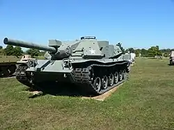 In the meantime, in September 1976 three West German Leopard 2AV prototypes were belatedly sent to Aberdeen for comparison testing.[35] Germany had signed a somewhat vague memorandum of understanding in 1974 committing both parties toward commonality in tank parts. Germany had assumed that its tank would be evaluated against the GM and Chrysler's prototypes and that the best tank would be chosen for production. This misunderstanding arose from the fact that in public statements both countries had overrepresented the MOU as an agreement that Germany and the U.S. would select a common MBT. In reality, the U.S. Army was unwilling to choose a foreign tank unless it was obviously superior in design and cost.[36] In any case, in evaluations the Leopard 2AV was found to meet U.S. requirements but was thought to cost more.[34] The U.S. Army announced in January 1977 that Germany had withdrawn the tank from consideration.[37]