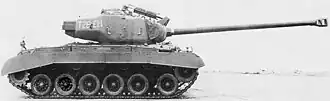 The M26 was the culmination of a series of medium tank prototypes that began with the T20 in 1942, and it was a significant design departure from the previous line of U.S. Army tanks that had ended with the M4 Sherman. Several design features were tested in the prototypes. Some of these were experimental dead-ends, but many became permanent characteristics of subsequent U.S. Army tanks.[5] This series of prototype vehicles began as a medium tank project that was similar to, but more modern than the recently introduced M4 Sherman, and ended several years later as the U.S. Army's first operational heavy tank.