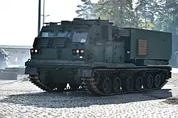 In 2012, a contract was issued to improve the armor of the M270s and improve the fire control to the standards of the M142 HIMARS.[28] In June 2015, the M270A1 conducted tests of firing rockets after upgrades from the Improved Armored Cab project, which provides the vehicle with an enhanced armored cab and windows.[29]