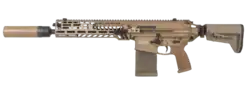After the failure of the Individual Carbine program, the Next Generation Squad Weapon (NGSW) was started in 2017. The program aimed to replace the M4 Carbine and the M249 SAW with weapons that would compensate for their perceived deficiencies when fighting at longer ranges, as well as addressing concerns about the effectiveness of traditional 5.56×45mm ammunition against troops wearing body armor in a future peer or near-peer conflict. In order to achieve these goals, all weapon submissions were to be chambered in a new 6.8x51 mm caliber. SIG Sauer, Textron Systems, FN Herstal, True Velocity (previously Lonestar Future Weapons and General Dynamics), and PCP Tactical took part in the program. Textron submitted a cased-telescoped (CT) ammunition-firing rifle for the program; FN Herstal submitted their HAMR IAR re-chambered in 6.8mm caliber; PCP Tactical submitted a modified Desert Tech MDRx; SIG Sauer submitted a redesigned MCX variant known as the MCX-SPEAR. In early 2022, the program concluded, with SIG Sauer being declared the winner. Their rifle entry was designated the XM5 (later changed to XM7 to avoid confusion with the Colt M5),[54] and the XM250 Squad Automatic Weapon.[55] Operational testing and fielding were scheduled for 2024.