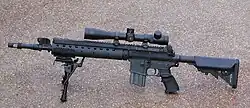 The Heckler & Koch HK416 was introduced in 2005, incorporating the same lower receiver as the M4A1, but replacing its direct impingement system with a gas-operated rotating bolt, more comparable to that of the G36.[48] The HK416 was adopted by the Navy SEALs, Delta Force, and other special forces.[47] In 2010, it was adopted by the Marines as the M27 Infantry Automatic Rifle.[49] The same year, the Rangers and Navy SEALs adopted the FN SCAR, but later withdrew their purchase, as it was not a significant enough improvement over the M4A1.[50]