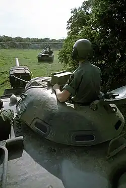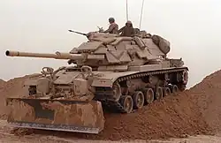 The M60 reached operational capability upon fielding to US Army European units beginning in December 1960.[17] The first combat use of the M60 was by Israel during the 1973 Yom Kippur War, where it saw service under the "Magach 6" designation, performing well in combat against comparable tanks such as the T-62. The Israelis again used the M60 during the 1982 Lebanon War, equipped with upgrades such as explosive reactive armor to defend against guided missiles that proved very effective at destroying tanks. The M60 also saw use in 1983 during Operation Urgent Fury, supporting US Marines in an amphibious assault on Grenada. M60s delivered to Iran also served in the Iran–Iraq War.