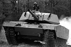 The main gun was chosen after a comparative firing test of six different guns carried out on the Aberdeen Proving Ground in 1958. The factors evaluated were accuracy, lethality of a hit, rate of fire and penetration performance.[21]