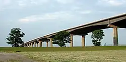 The section between Ferrybridge and North Cave was the last to be planned[4] and built. The Ouse Bridge, across the River Ouse west of Goole, commenced in January 1973 and is nearly 1 mile (1.6 km) long and rises to 98.4 feet (30.0 m) above ground level. Completion of the bridge was delayed due to "steel supplies [being] a chronic headache" and a partial collapse of the framework caused by bolts joining a cross-beam to a trestle shearing.[4] Problems with the bridge delayed the opening of the section east of Goole to May 1976.[4]