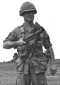 In 1961, the first M79 grenade launchers were delivered to the US Army. Owing to its ease of use, reliability, and firepower, the M79 became popular among American soldiers, who dubbed it "the platoon leader's artillery".[11][12] Some soldiers would cut down the stock and barrel to make the M79 even more portable.[13]