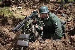 The German tactical infantry doctrine of the era based a (10-man Gruppe) squad's firepower on the general-purpose machine gun in the light machine gun role.[20] The advantage of the general-purpose machine gun concept was that it added greatly to the overall volume of fire that could be put out by a squad-sized unit.[21][22]