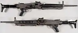 - ^ The 7.62×51mm NATO chambered MG 3 predecessor MG 1A2 (known also as the MG 42/59) added new bolt-bounce preventing bolt catches to the action to resolve the ammunition ignition timing sensitivity of the preceding variants.