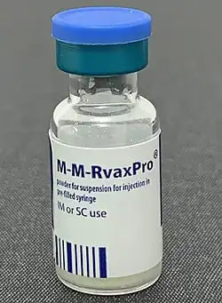 - ^ a b c "M-M-R II- measles, mumps, and rubella virus vaccine live injection, powder, lyophilized, for suspension". DailyMed. 23 May 2022. Archived from the original on 6 April 2020. Retrieved 19 June 2022.