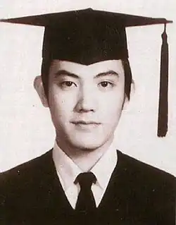 Because he was the family's only son, Ma was pressured to succeed academically by his father, who insisted that he study the Chinese classics, master Chinese calligraphy, and practice track and field.[1] In 1966, while a high school student, Ma decided to study law in college after being advised by his father to pursue a career similar to that of diplomat Wellington Koo.[22] After graduating from Taipei Municipal Chien Kuo High School, he joined the KMT in June 1968 and became a young activist for the party.[12] He passed with high marks on the General Scholastic Ability Test and was admitted to National Taiwan University (NTU) to study law, enrolling in September 1968.[23]