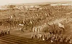 The 1st Maccabiah opened on March 28, 1932.[13] The Maccabiah Stadium in Tel Aviv, which was built with donations, was filled to capacity. Roughly 400 athletes from 18 countries took part in everything from swimming, football, and handball, to various athletics. In the first Games, the Polish delegation took first place.[13]