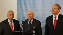 Concerns were expressed in Skopje and Athens on the stability of the governing coalition of VMRO-DPMNE and Democratic Party of Albanians (DPA) and subsequently the negotiating power of PM Nikola Gruevski with regards to the naming dispute, after the leader of DPA Menduh Thaçi accused the government of not complying with its requests about the rights of Albanians in the Republic of Macedonia.[101] Greek media considered the option that the crisis might be a diplomatic way of increasing the pressure on the Greek side.[102] Following a call for cooperation by the president Branko Crvenkovski, the other four major parties agreed to support Gruevski's government until NATO's convention in Bucharest on 4 April 2008.[103][104]